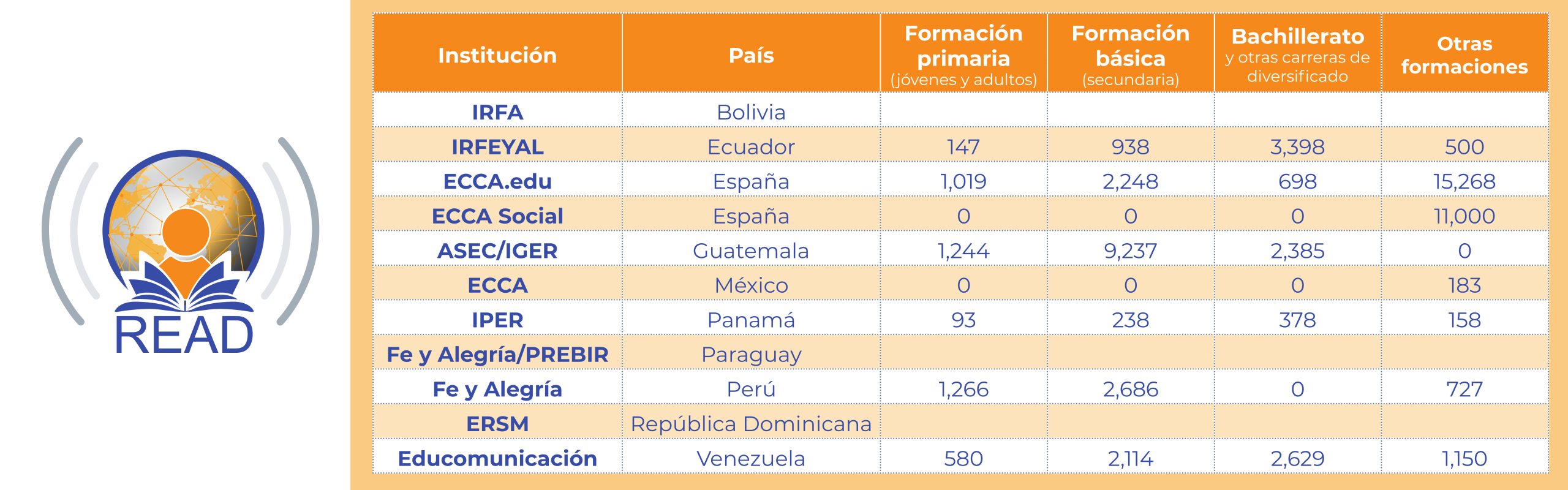 La actividad de READ se centra en las personas. Aquí van algunos números que presentan nuestros resultados de los últimos ejercicios académicos (2020 y 2021).